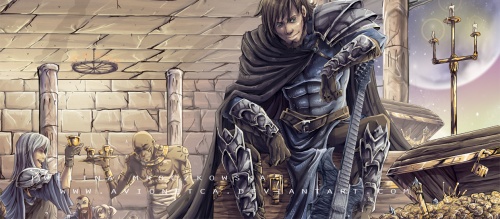 "That's not true. I killed a blind guy in a street fight. Anyway, that's neither here nor there. A few years back, just after drawing my Second Breath, I was meandering about the Scavlands and playing my sanxian basically for anyone who'd pay to listen. I fell in with some pretty weird crowds -- you wouldn't believe the sort of people who actively follow folk music -- but after awhile, I actually managed to do reasonably well for myself. I attracted the attention of some pretty prominent Scavenger Lords."