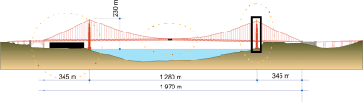 • At the center of the bridge, embedded into the steel supports underneath the highway